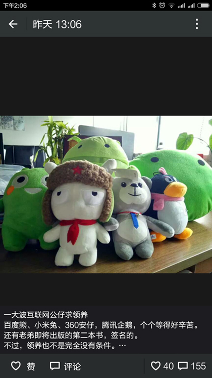 百度熊、小米兔、360安仔,騰訊企鵝,個(gè)個(gè)等得好辛苦。